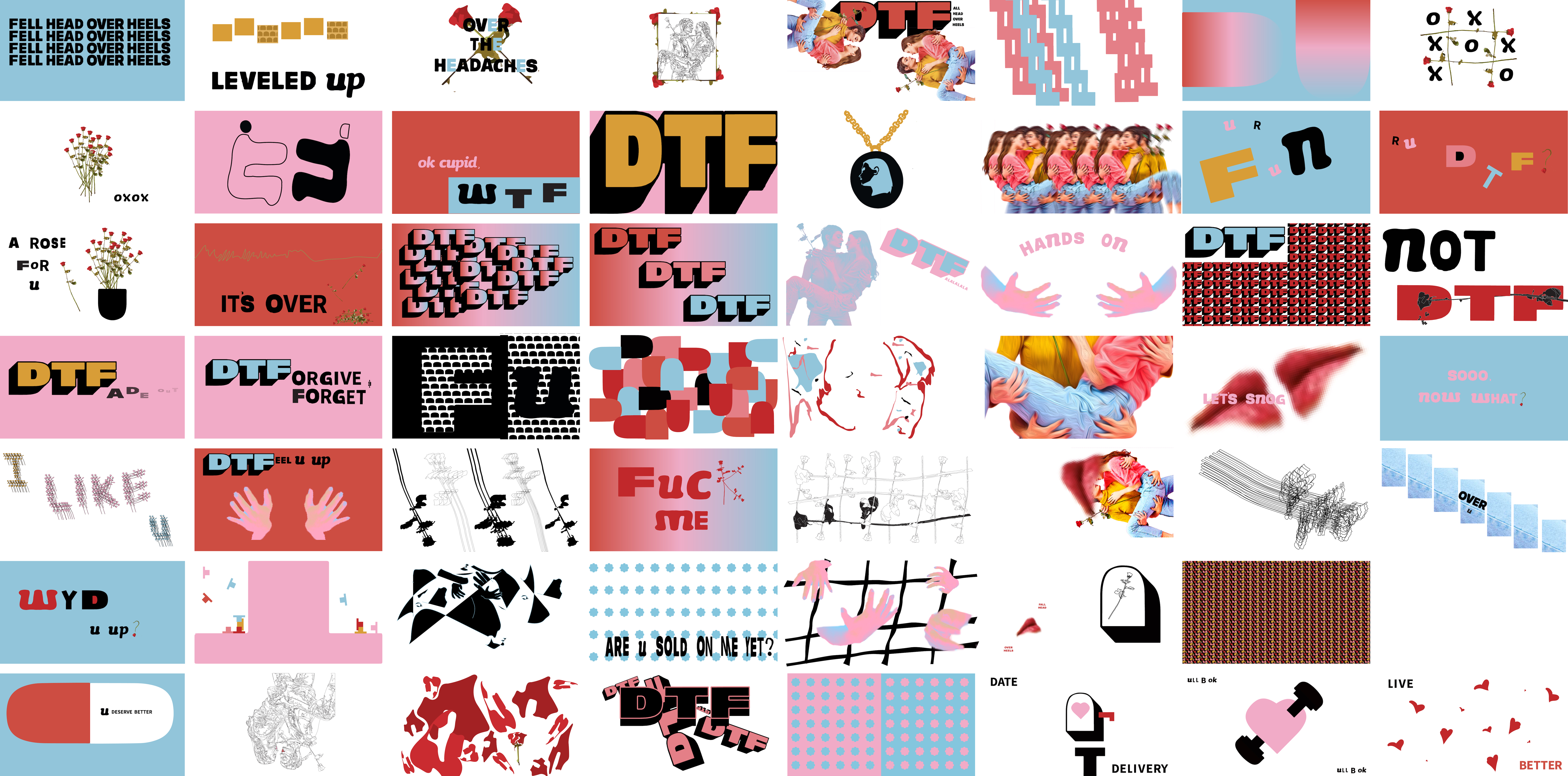To honor my love for this campaign, I made fifty iterations of one of the original posters using only components of said poster. Then, I turned my favorites into postcards. The idea behind the postcards is they would be sent to OK, Cupid members to give out after their dates with people they met through the app. This project is not for the faint of heart which is maybe why I enjoyed working on it so much. It sort of disrupted a system in its own way and I can stand behind that.